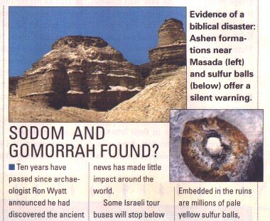 Die meisten von uns werden sicherlich schon etwas von Sodom und Gomorra gehört haben, aber nur relativ wenige kennen die Details. Ich möchte hier aber nicht näher auf eines der damit zusammenhängenden theologischen Themen eingehen, vielmehr möchte ich nur auf die Tatsache hinweisen, dass Reste dieser (und anderer) biblischen Städte gefunden wurden, die die Wahrheit der Bibel auch in dieser schier unglaublichen Geschichte bis in die Details hinein bestätigen.